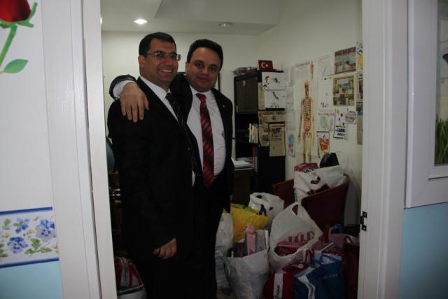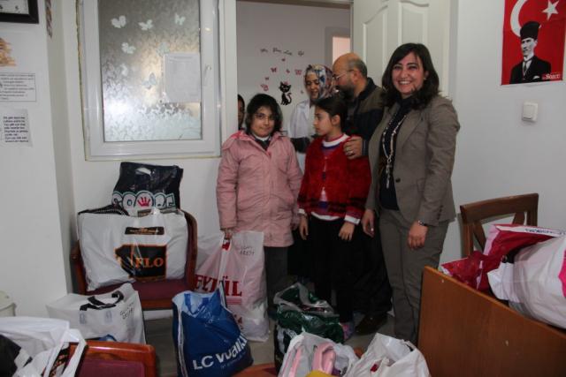 Özel bir rehabilitasyon merkezinde eğitim gören öğrencilere yapılan kırtasiye ve giyim desteği.